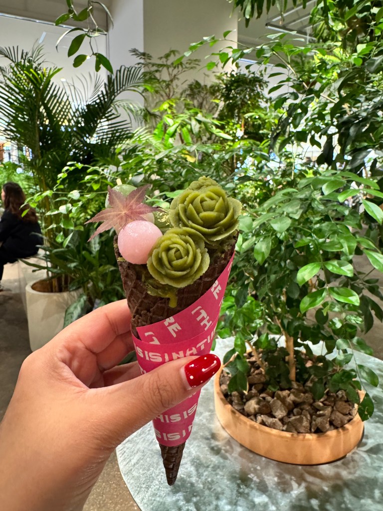 This vegan cafe is located inside of a shopping mall off the main street in Kyoto. Thankfully it’s not hard to find. I went there for their Instagramable matcha ice cream cone decorated with mochi flowers. I liked the matcha ice cream a lot but the mochi decorations, not so much. Next time I’d get the regular ice cream. They also have cookies and other desserts to go which would make great souvenirs.